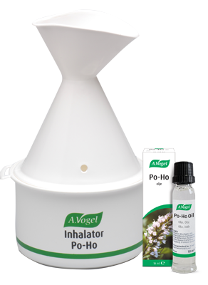 Po‑Ho inhalator z oljem A.Vogel je praktičen pripomoček za inhaliranje vodnih par z dodatkom eteričnega olja. Namenjen je vsem, ki želijo podpreti lažje in prijetnejše dihanje, zlasti ob slabši prehodnosti zgornjih dihalnih poti. Inhalator je primeren za domačo uporabo in se uporablja skupaj z naravnim Po‑Ho oljem, ki je izdelano po originalnem receptu Alfreda Vogla.