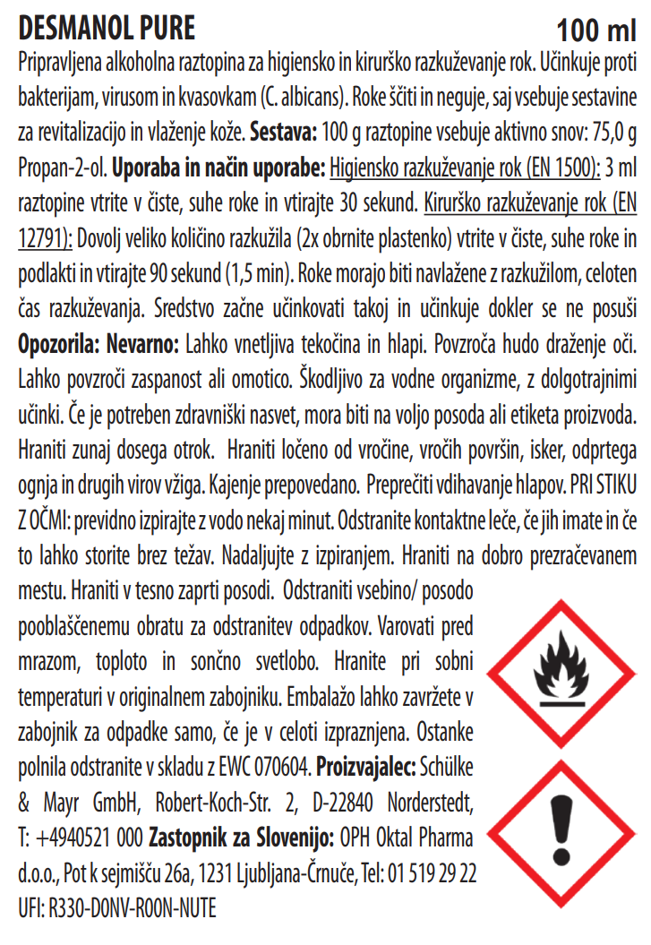 Desmanol pure je pripravljeno alkoholno sredstvo za higiensko in kirurško razkuževanje rok.