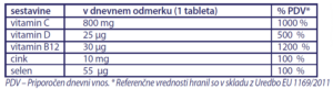 Prehransko dopolnilo s sladili, vitaminom C, vitaminom D, vitaminom B, cinkom in selenom.