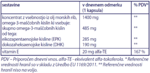 Prehransko dopolnilo z omega-3-mašcobnimi kislinami EPK + DHK in vitaminom E.