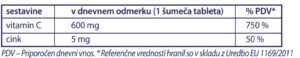 Vitamin C in cink imata vlogo pri delovanju imunskega sistema in zaščiti celic pred oksidativnim stresom.