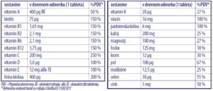 sok rdeče pese v prahu, cinkov sulfat, pantotenska kislina, riboflavin, piridoksinijev hidroklorid, tiamin mononitrat, retinil acetat, folna