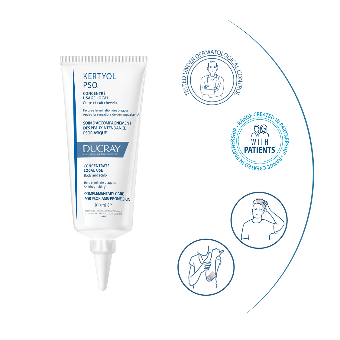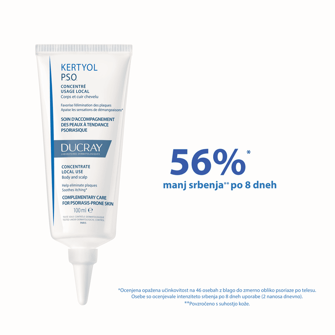 Telo (komolci, kolena): DUCRAY KERTYOL P.S.O. keratoreducirajočo kremo nanesite zjutraj in zvečer z nežnimi masirajočimi gibi. Pustite delovati vsaj 20 minut, da krema deluje. Če je potrebno, sperite ostanek izdelka s čisto vodo. Uporabljajte mesec dni, kljub temu da se stanje lahko izpoljša že po 14 dneh uporabe. Lasišče: DUCRAY KERTYOL P.S.O. keratoreducirajočo kremo nanesite na lasišče zvečer s pomočjo aplikatorja. Pustite delovati celo noč. Zjutraj sperite z DUCRAY ELUTION dermatološkim zaščitnim šamponom. Najkrajša priporočena uporaba: 15 dni.