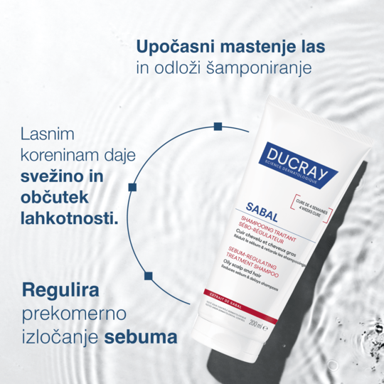 Ducray Sabal seboregulirajoči tretma šampon je primeren za mastne lase in lasišče. Zmanjšuje prekomerni sebum in odloži šamponiranje.