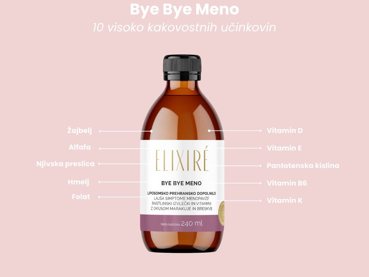 Sestavine: voda, sredstvo za zgostitev: glicerol, izvleček žajblja (Salvia officinalis L.), izvleček regrata (Taraxacum officinale), izvleček lucerne (Medicago sativa L.), emulgator: sojin lecitin, izvleček njivske preslice (Equisetum Arvense L.), izvleček hmelja (Humulus lupulus), srednjeverižni trigliceridi, arome (marakuja, vanilija, bela breskev), izvleček črne detelje (Trifolium pratense), vitamin E, konzervans: kalijev sorbat, izvleček grozdnate svetilke (Cimicifuga racemosa), sredstvo za uravnavanje kislosti: citronska kislina, sredstvo za zgostitev: ksantan gumi, pantotenska kislina, vitamin B6, vitamin K2, folna kislina, vitamin D3.