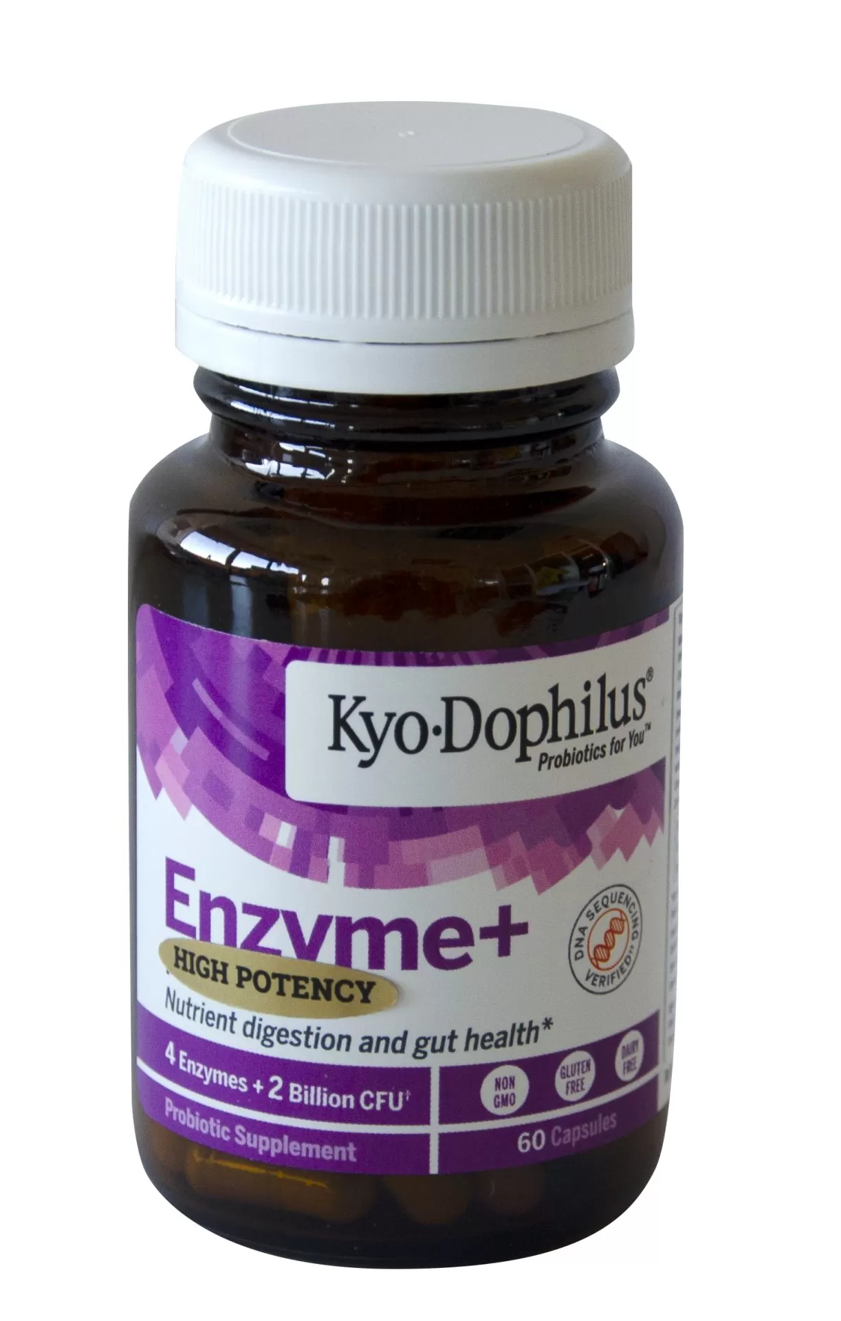 Prehransko dopolnilo Kyo-Dophilus plus Encimi vsebuje štiri prebavne encime:proteaza, laktaza, lipaza, amilazav kombinaciji s tremi kulturami L. gasseri, B. bifidum in B. longum.